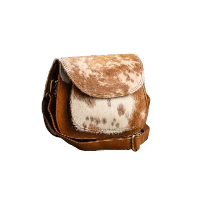 Women's Cow Hide Hair Genuine Leather Crossbody Shoulder Saddle Purse